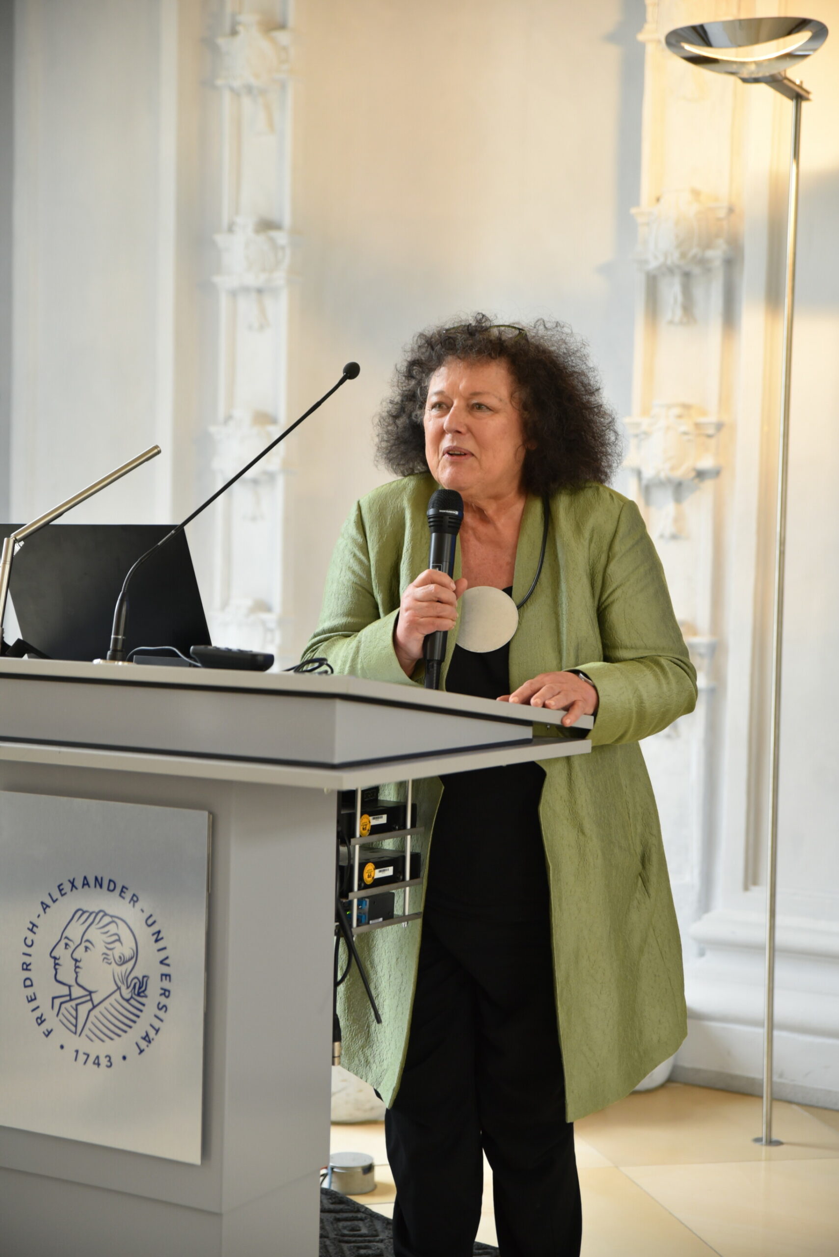 Auch Festrednerin Dr. Regina Görner, die Vorsitzende der Bundesarbeitsgemeinschaft der Seniorenorganisationen (BAGSO), plädiert ebenso „Lebenslanges Lernen muss neu gedacht werden – und da ist die FAU mit FAU Scientia auf dem richtigen Weg“.