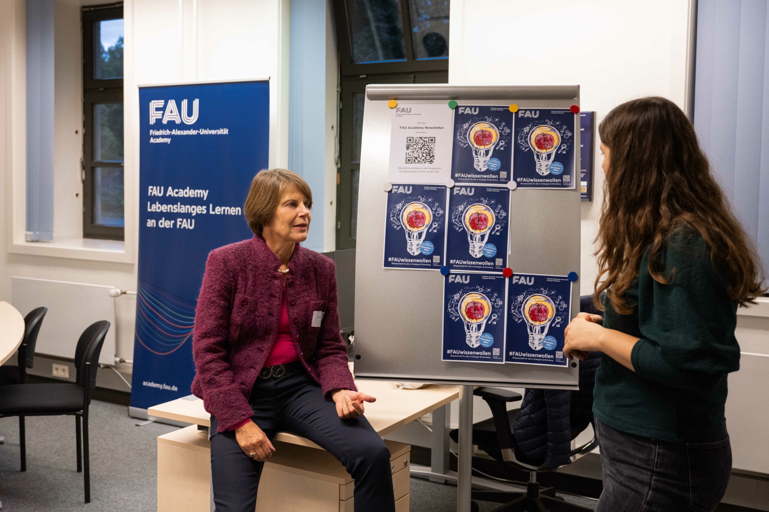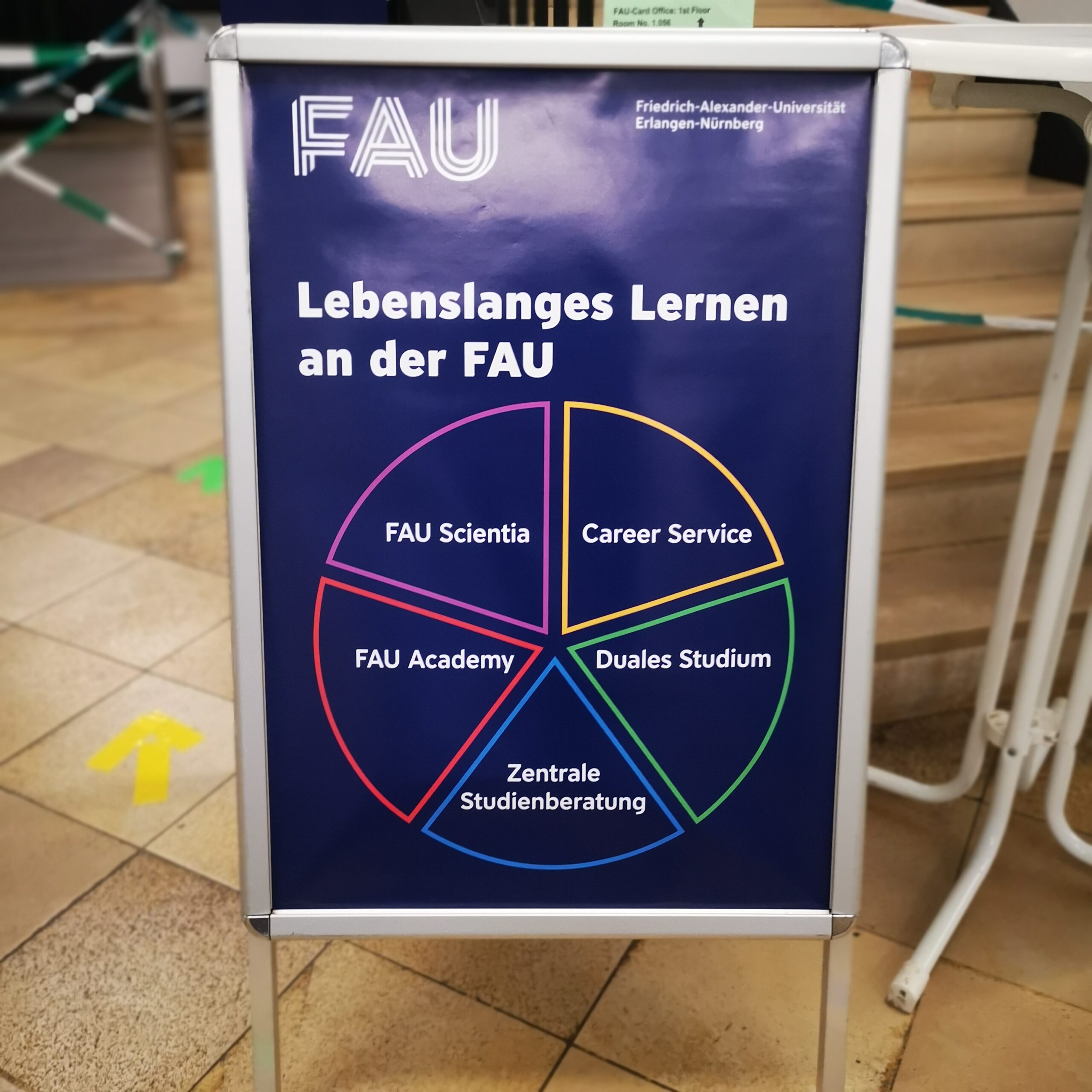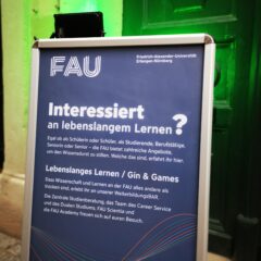 Unter dem Motto Lebenslanges Lernen – Gin & Games konnten sich Interessierte über die Bildungsmöglichkeiten an der FAU informieren. FAU Scientia, FAU Academy, Zentrale Studienberatung, Duales Studium und der Career Service waren dabei.